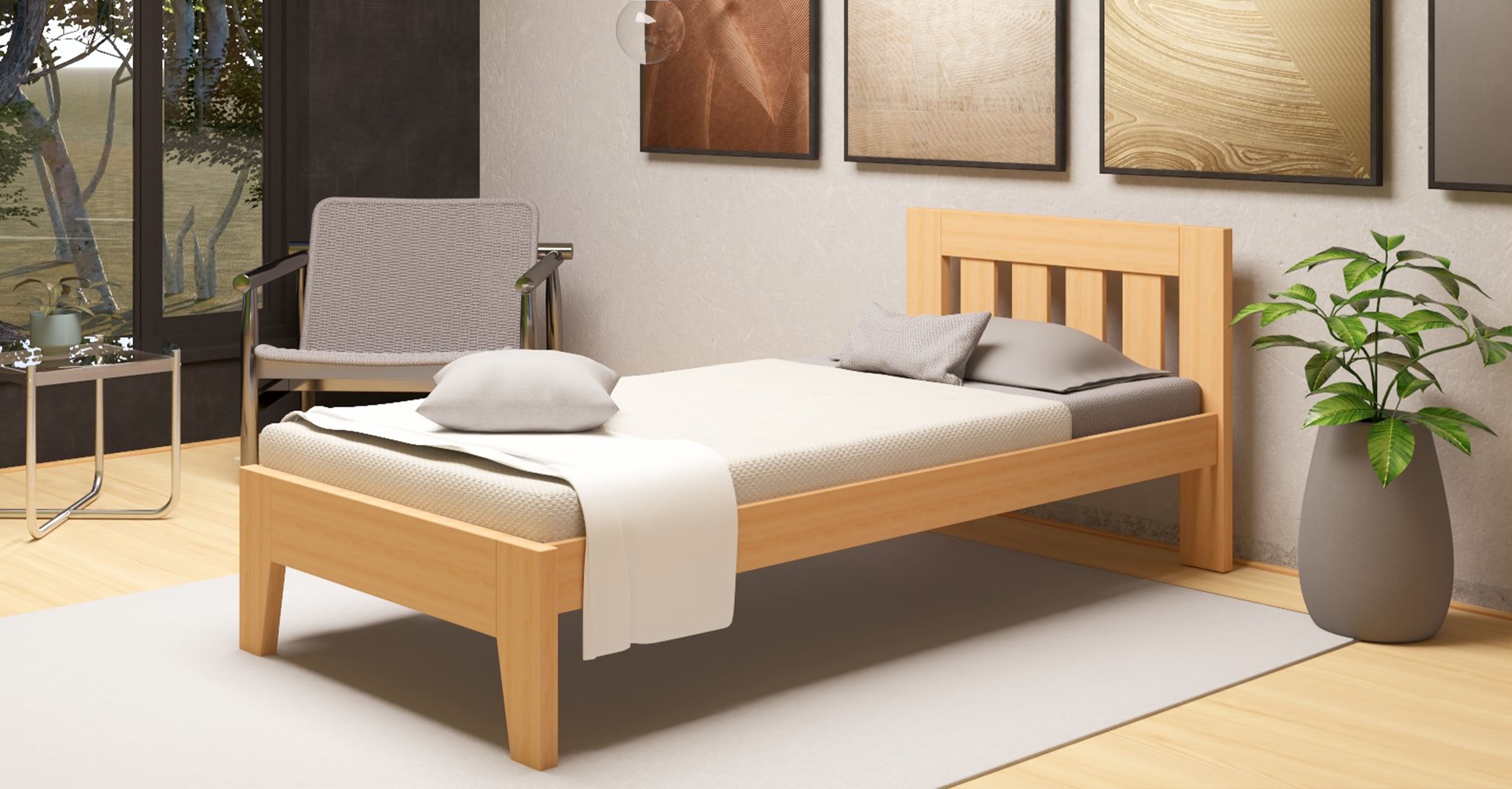 Jednostavan i elegantan singl krevet od punog drveta, namenjen jednoj osobi, izrađen sa pažnjom prema detaljima i dugotrajnom udobnošću